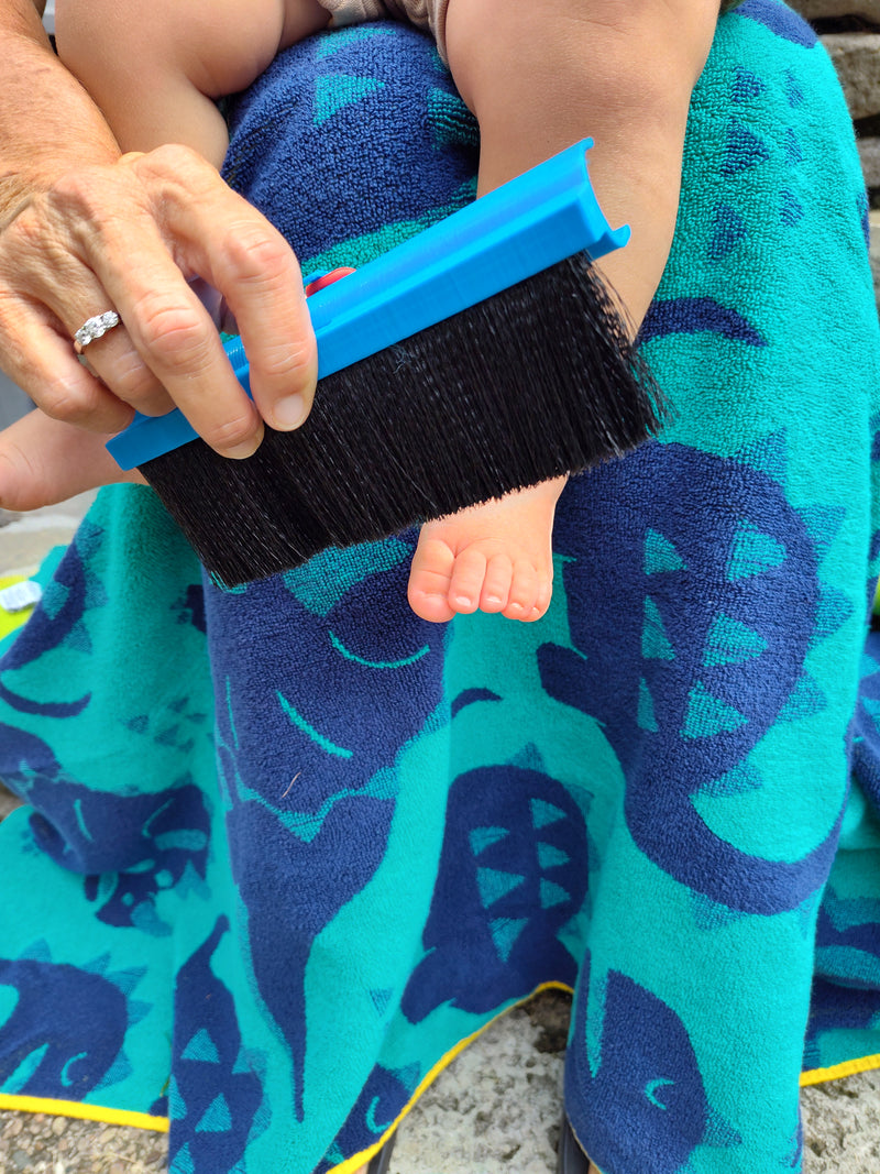 The patent pending Tidey Beach Brush is ingeniously designed to tackle the age-old problem of sand sticking to everything after a day at the beach.