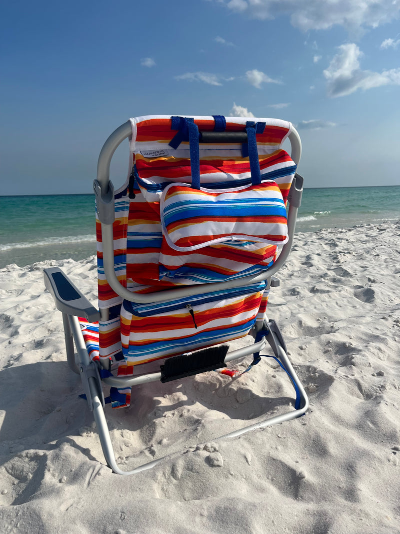 Simply pull it loose from your chair, dust yourself and belongings and re-clip it to the tubing to ensure it will be available for your next beach adventure.